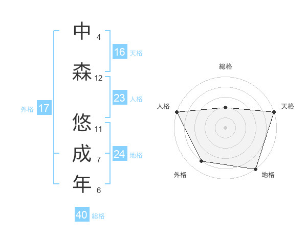 中森 悠成年さんを姓名の画数から五運を鑑定