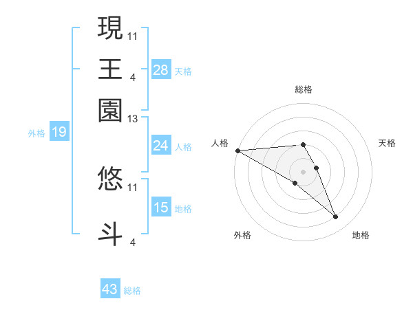 現王園 悠斗さんを姓名の画数から五運を鑑定