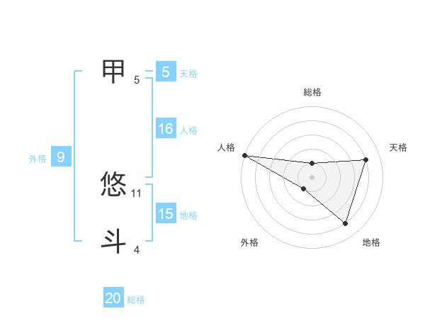 甲 悠斗さんの総格は20画の1点!
