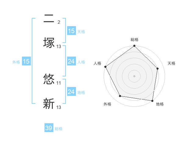 二塚 悠新さんを姓名の画数から五運を鑑定