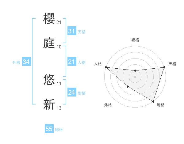 櫻庭 悠新さんを姓名の画数から五運を鑑定