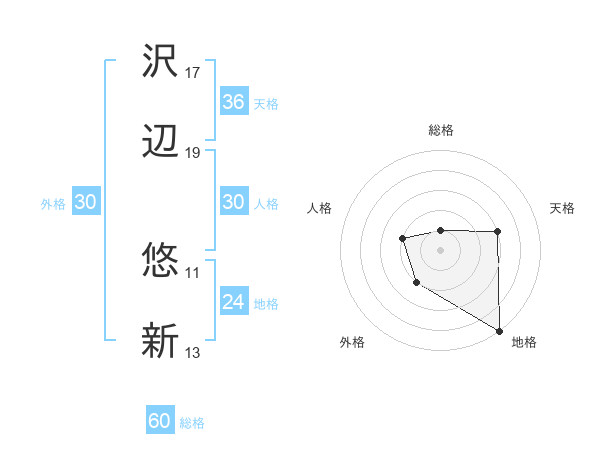 沢辺 悠新さんの総格は60画の1点!