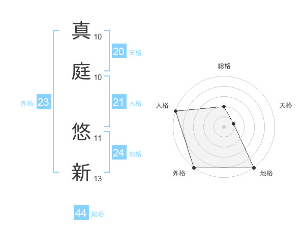 真庭 悠新さんの外格は23画の5点!