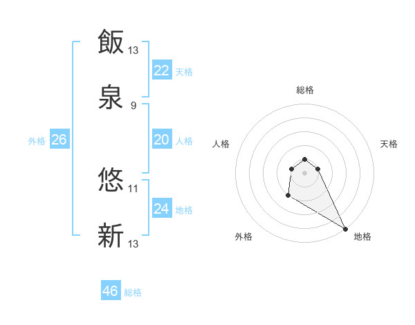 飯泉 悠新さんの総格は46画の1点!