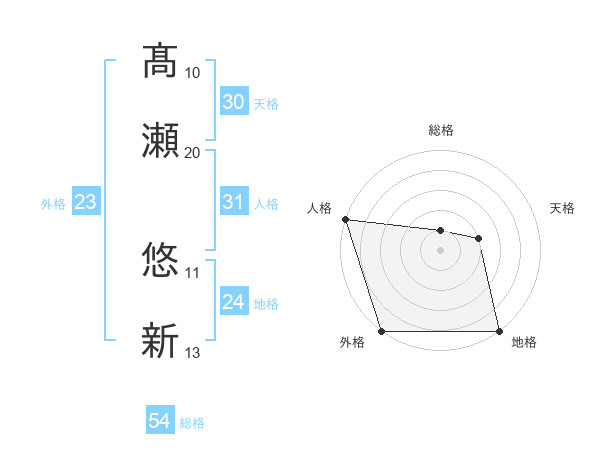 髙瀬 悠新さんの外格は23画の5点!