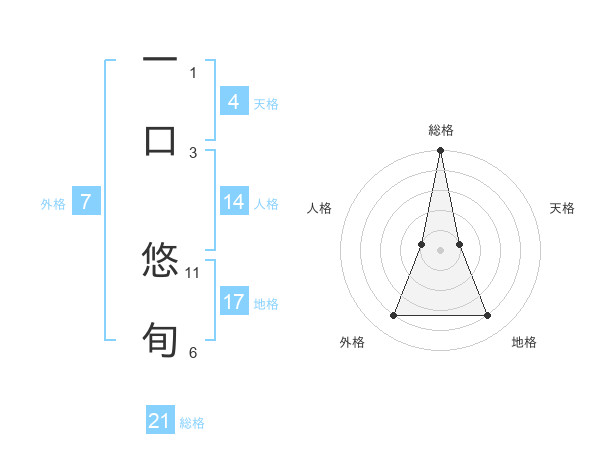 一口 悠旬さんの総格は21画の5点!