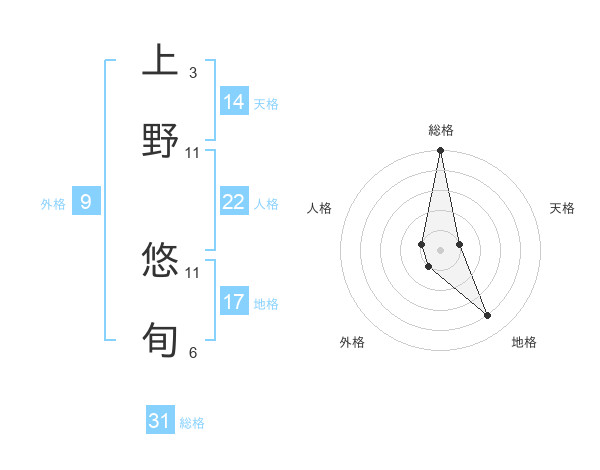 上野 悠旬さんの総格は31画の5点!