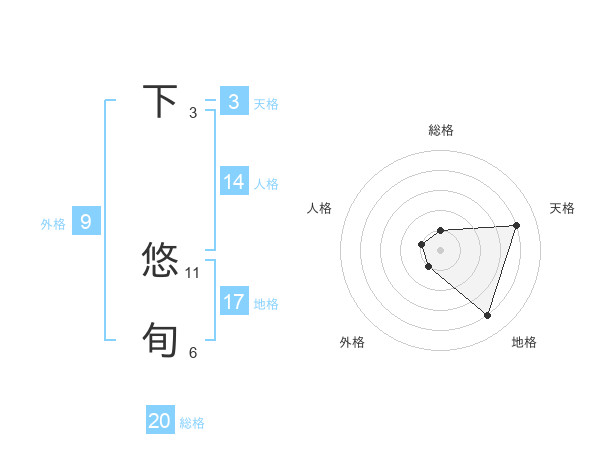 下 悠旬さんの総格は20画の1点!