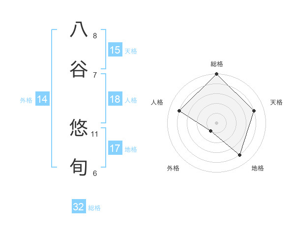 八谷 悠旬さんの総格は32画の5点!