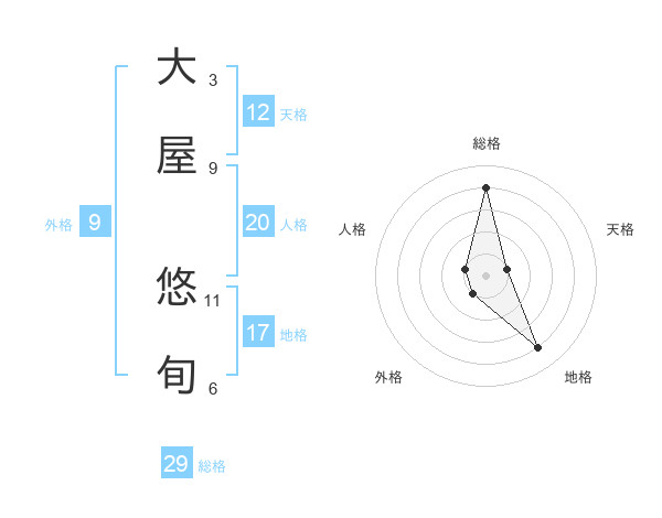 大屋 悠旬さんを姓名の画数から五運を鑑定