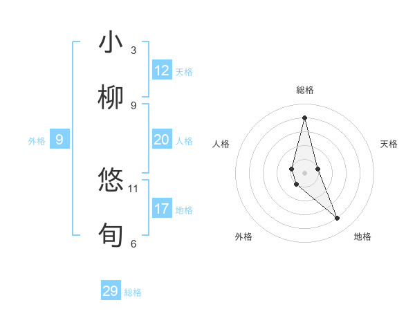 小柳 悠旬さんの総格は29画の4点!