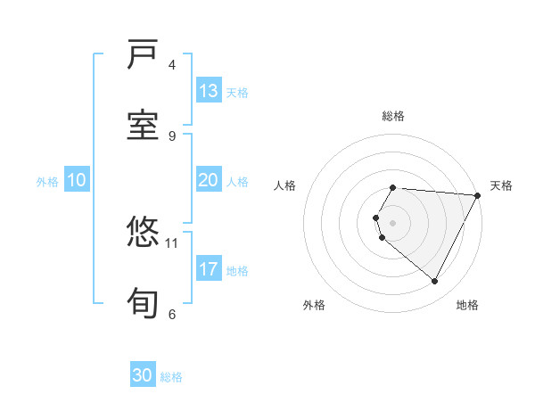 戸室 悠旬さんの総格は30画の2点!
