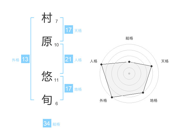 村原 悠旬さんの地格は17画の4点!