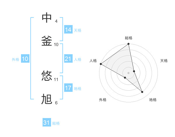 中釜 悠旭さんを姓名の画数から五運を鑑定