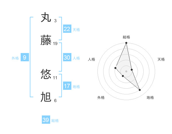丸藤 悠旭さんの総格は39画の5点!