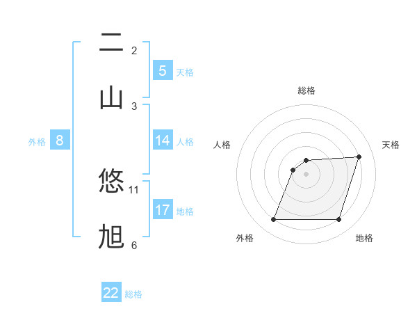 二山 悠旭さんを姓名の画数から五運を鑑定