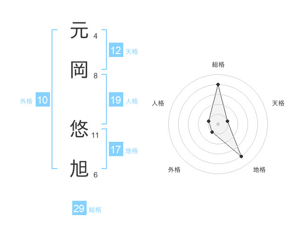 元岡 悠旭さんの総格は29画の4点!