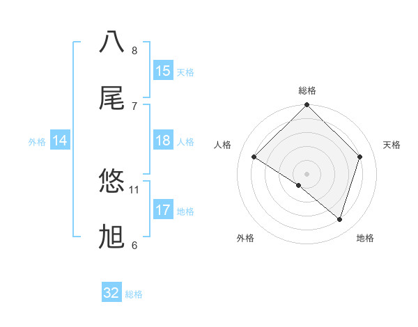 八尾 悠旭さんの総格は32画の5点!