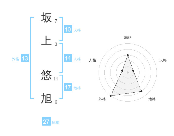 坂上 悠旭さんの総格は27画の3点!