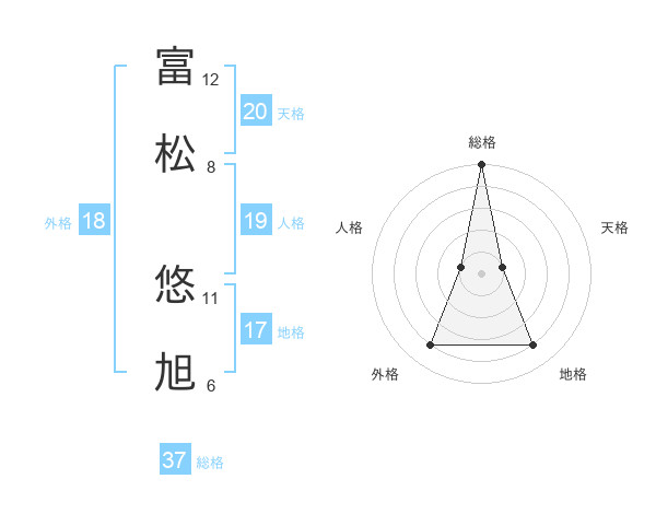 富松 悠旭さんの総格は37画の5点!
