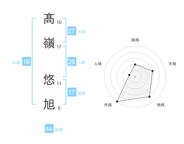 髙嶺 悠旭さんの総格は44画の2点!