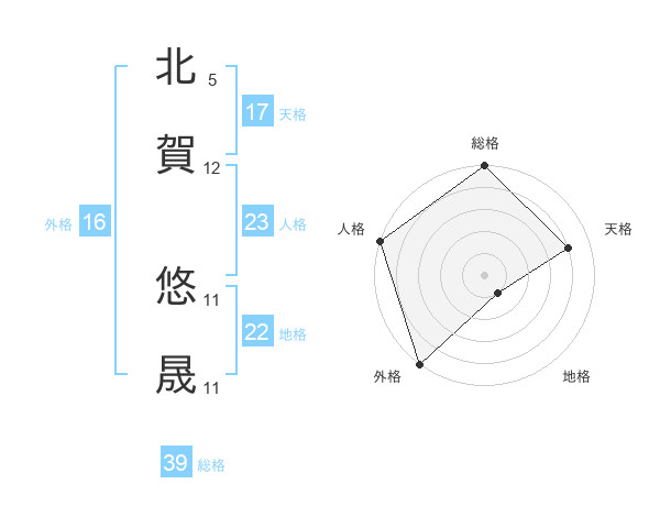 北賀 悠晟さんの総格は39画の5点!