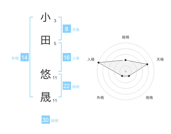小田 悠晟さんを姓名の画数から五運を鑑定