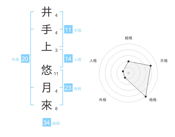 井手上 悠月來さんを姓名の画数から五運を鑑定
