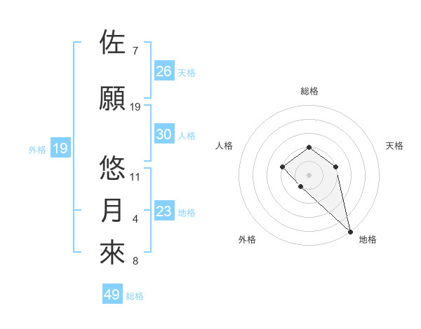 佐願 悠月來さんを姓名の画数から五運を鑑定