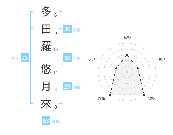 多田羅 悠月來さんを姓名の画数から五運を鑑定