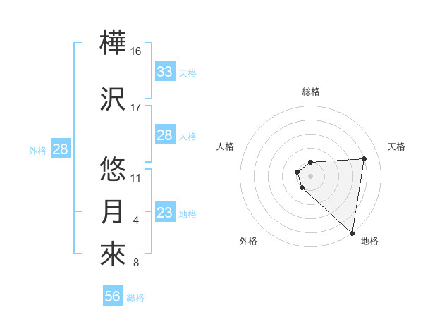 樺沢 悠月來さんを姓名の画数から五運を鑑定