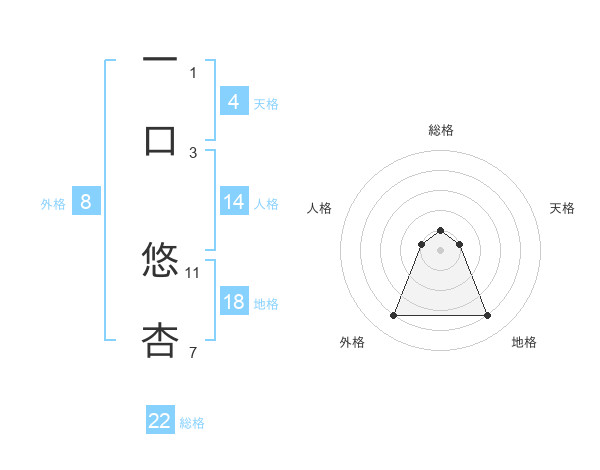 一口 悠杏さんの外格は8画の4点!