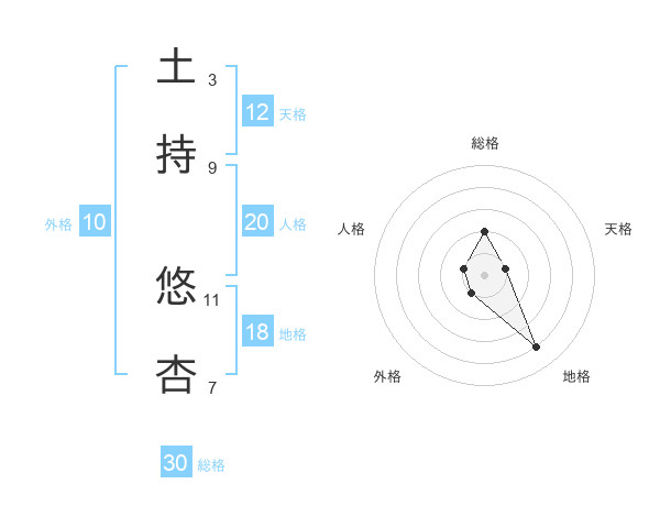 土持 悠杏さんの総格は30画の2点!