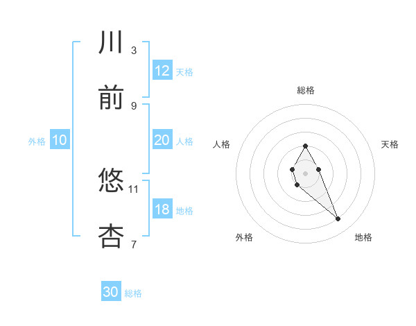 川前 悠杏さんの総格は30画の2点!