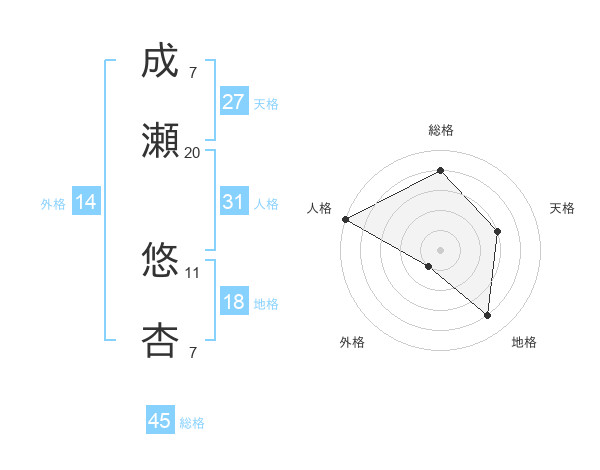 成瀬 悠杏さんを姓名の画数から五運を鑑定