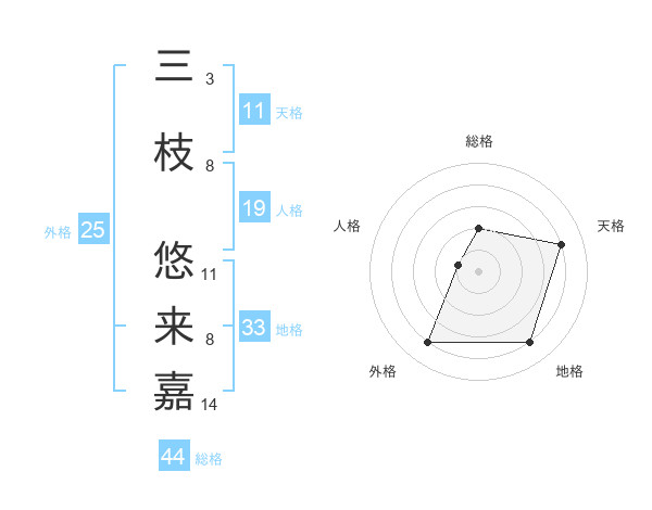 三枝 悠来嘉さんの天格は11画の4点!