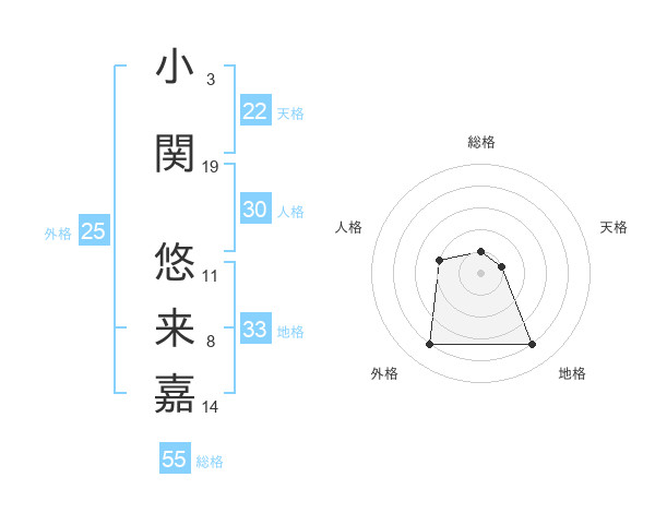 小関 悠来嘉さんを姓名の画数から五運を鑑定