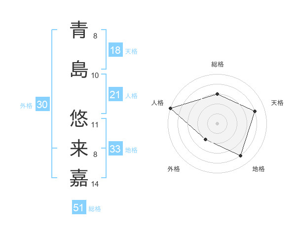 青島 悠来嘉さんを姓名の画数から五運を鑑定
