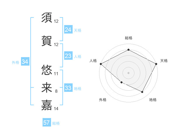 須賀 悠来嘉さんを姓名の画数から五運を鑑定