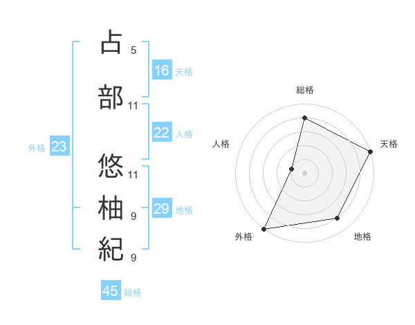 占部 悠柚紀さんを姓名の画数から五運を鑑定