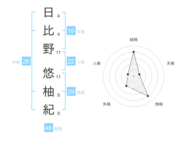日比野 悠柚紀さんを姓名の画数から五運を鑑定
