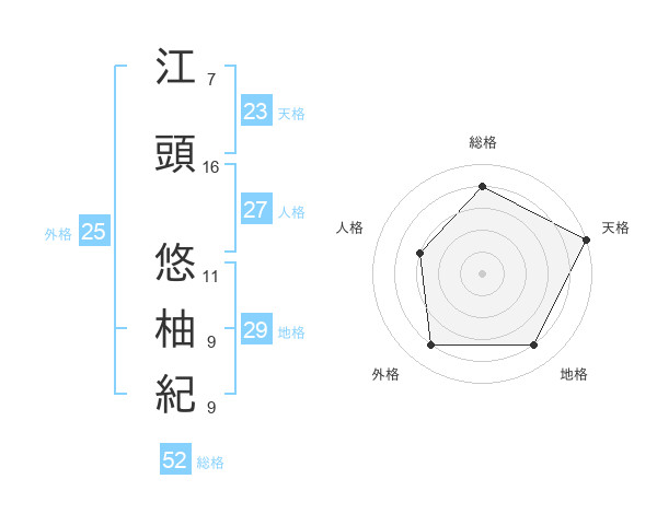 江頭 悠柚紀さんを姓名の画数から五運を鑑定