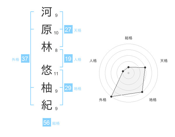 河原林 悠柚紀さんを姓名の画数から五運を鑑定