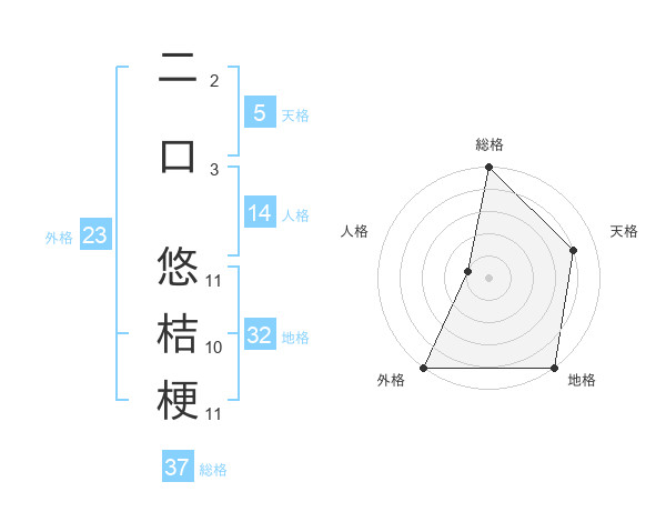 二口 悠桔梗さんを姓名の画数から五運を鑑定