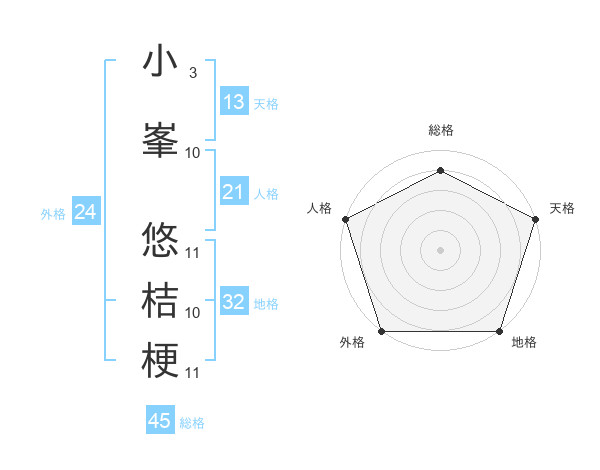 小峯 悠桔梗さんを姓名の画数から五運を鑑定