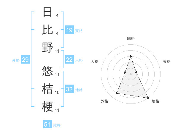 日比野 悠桔梗さんを姓名の画数から五運を鑑定