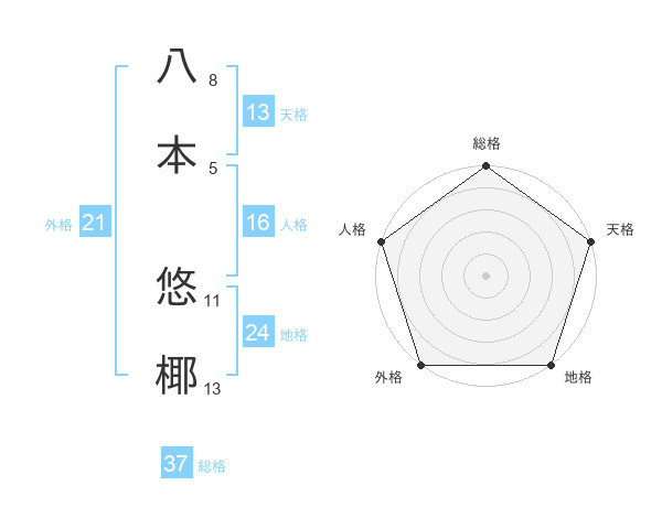八本 悠椰さんの総格は37画の5点!