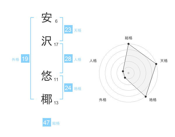 安沢 悠椰さんの総格は47画の5点!