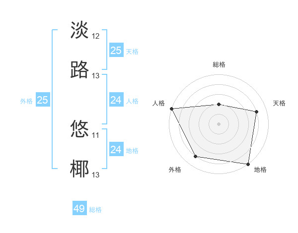 淡路 悠椰さんを姓名の画数から五運を鑑定