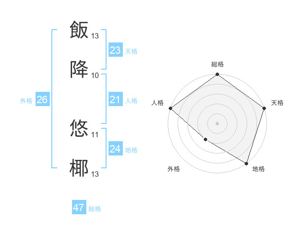 飯降 悠椰さんの総格は47画の5点!
